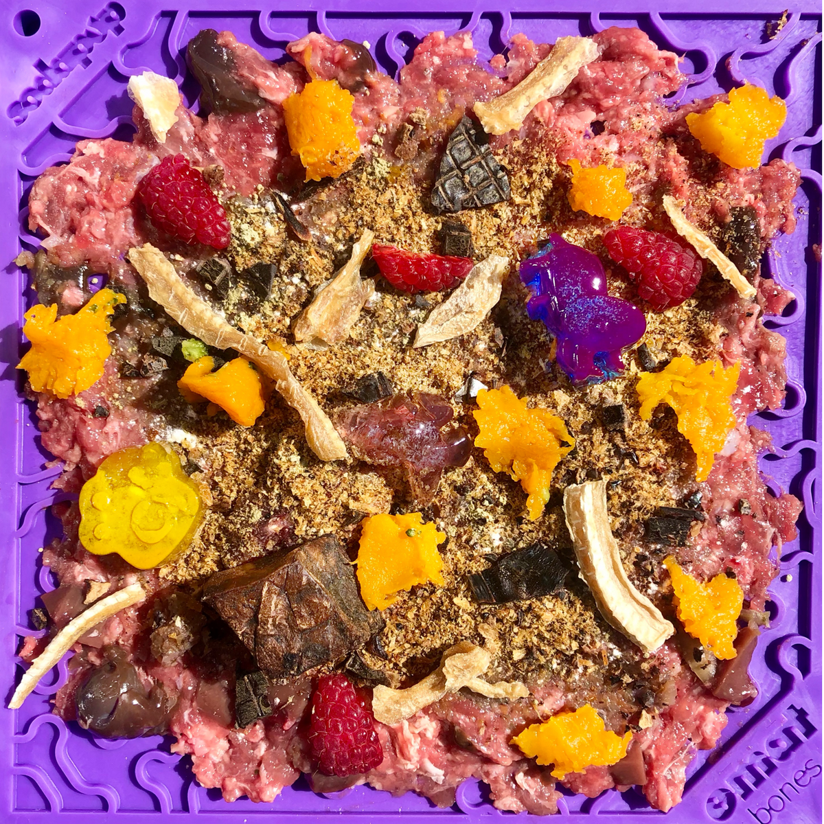 TREAT SUGGESTIONS: Mix any of our meal toppers with things like Doggy peanut butter, Raw Food, Greek yogurt (plain) and spread on the eMat!