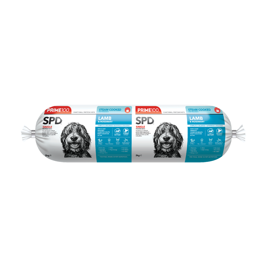 AAFCO Statement: Prime100 SPD Lamb & Rosemary steam cooked roll is formulated to meet the nutritional levels established by the AAFCO Dog Food Nutrient Profiles for dogs of all ages.